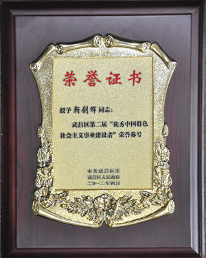 2012年4月,靳劍輝獲評為武昌區第二屆“優秀中國特色社會主義建設者”