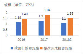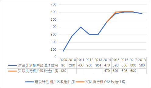 圖2::2009-2018棚改計劃與實際改造量(單位:萬套)