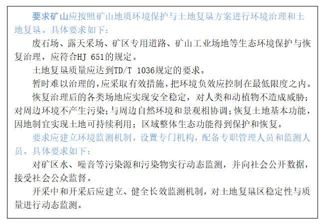 這條規(guī)定針對的是礦山地質(zhì)環(huán)境治理與復(fù)墾,以及在環(huán)境監(jiān)測方面的要求,本文僅針對以上兩方面展開論述。