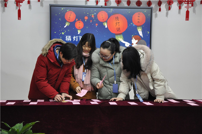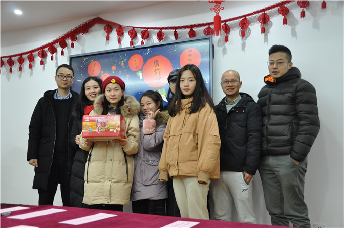 “與我同行”猜一字;“遇事不求人”打一成語(yǔ);“八駿日行三萬(wàn)里”打《三國(guó)演義》人名……諸如此類的燈謎近百余條。有人“團(tuán)戰(zhàn)”,有人“獨(dú)斗”;有人一頭霧水,有人頓生靈感;有人眉頭緊鎖,有人開(kāi)懷大笑。領(lǐng)獎(jiǎng)處更是一番熱鬧忙碌的場(chǎng)景,猜對(duì)謎底的小伙伴們紛紛收獲了薯片、飲料、愛(ài)心大棗等戰(zhàn)利品,禮輕情意重,小小的禮品表達(dá)了公司對(duì)大家的問(wèn)候與祝福。