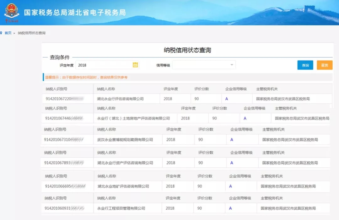 近日,國(guó)家稅務(wù)總局湖北省稅務(wù)局對(duì)企業(yè)開(kāi)展了納稅信用等級(jí)評(píng)定工作,經(jīng)過(guò)嚴(yán)格審核,永業(yè)行旗下9家公司被評(píng)為“湖北省2018年度納稅信用A級(jí)納稅人”稱號(hào),分別是湖北永業(yè)行評(píng)估咨詢有限公司、永業(yè)行(湖北)土地房地產(chǎn)評(píng)估咨詢有限公司、武漢永業(yè)賽博能規(guī)劃勘測(cè)有限公司、湖北永業(yè)行資產(chǎn)評(píng)估咨詢有限公司、湖北永業(yè)地礦評(píng)估咨詢有限公司、永業(yè)行工程項(xiàng)目管理有限公司以及永業(yè)行黃石分公司和黃岡分公司。2016至2018年,永業(yè)行旗下多家公司連年被評(píng)為A級(jí)納稅人,累計(jì)繳納各項(xiàng)稅費(fèi)過(guò)億元。