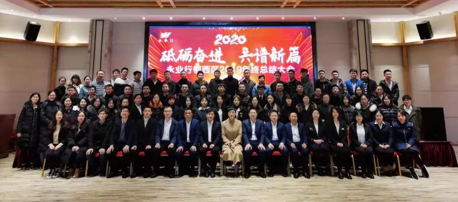 2020年1月13日,永業行鄂西區隆重召開2019年度總結大會。永業行執行總裁王琴、鄂西區總經理雷小明及90余名員工參與本次會議。