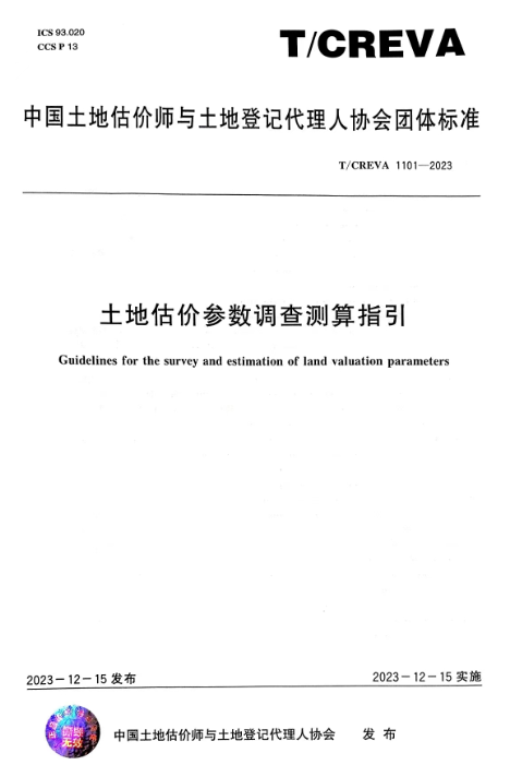 12月14日,中國(guó)土地估價(jià)師與土地登記代理人協(xié)會(huì)(以下簡(jiǎn)稱“中估協(xié)”)發(fā)布三項(xiàng)團(tuán)體標(biāo)準(zhǔn),永業(yè)行參編的《土地估價(jià)參數(shù)調(diào)查測(cè)算指引》(T/CREVA 1101—2023)于2023年12月15日發(fā)布實(shí)施。