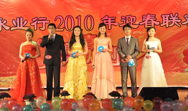 晚會由張璐、文云波、吳夢夢、曾莎莎、薛光偉、張欣鑫6位主持人共同主持,公司有關領導擔任節目評委。當身著華服的主持人靚麗登臺,掌聲、歡呼聲讓現場變成一片熱鬧的海洋,晚會隨即在熱烈的氣氛中拉開帷幕。不動產部員工跳起了舞蹈《紅紅的日子》,賽博能員工唱起了歌曲《原來你也在這里》,黃岡分部員工演繹了小品《踏雪尋梅》,襄樊分部員工表演了相聲《我開始努力了》,孝感分部員工帶來了詩朗誦《騰飛吧,永業行》等等,還有武漢音樂學院老師等為大家獻上歌舞節目現場助興,董事長方國成的有獎猜謎、征聯,及鉆桿等游戲活動穿插其中,也為晚會增色不少。