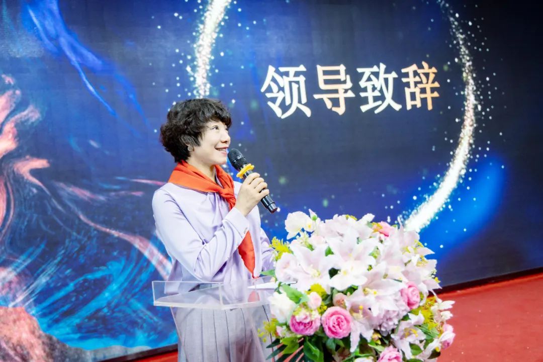 伴著熱情的掌聲,武漢市婦女事業(yè)發(fā)展促進(jìn)會(huì)和經(jīng)開區(qū)教育局的領(lǐng)導(dǎo)們步入新城小學(xué),學(xué)校六年級(jí)優(yōu)秀畢業(yè)生為嘉賓佩戴鮮艷的紅領(lǐng)巾。走進(jìn)新城小學(xué),已感受到濃濃的節(jié)日氛圍,教學(xué)樓前,扎染展區(qū)、美術(shù)展區(qū)展出了孩子們動(dòng)手創(chuàng)作的工藝品,美術(shù)展區(qū)內(nèi),書法社的師生現(xiàn)場(chǎng)創(chuàng)作折扇;舞臺(tái)上,古箏表演《少年中國說》《采菊東籬下》、舞蹈表演《AI里的傳承》等表演精彩紛呈。