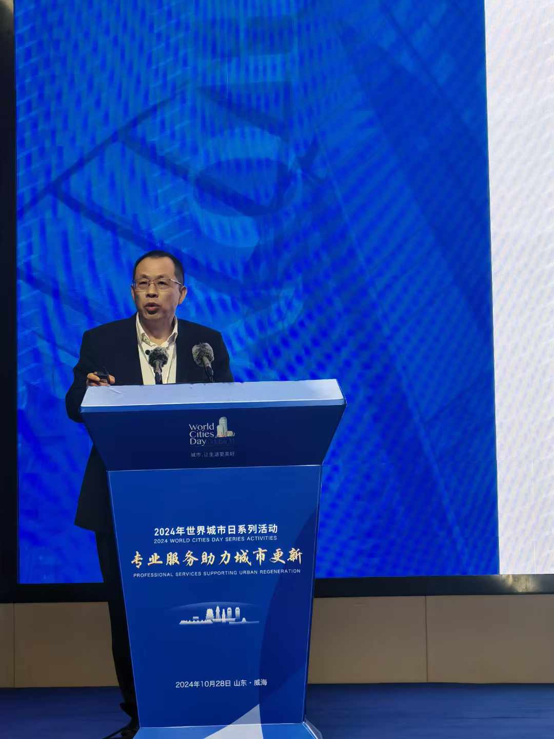 2024年10月28日,中國房地產估價師與房地產經紀人學會(下稱“中房學”)在威海召開2024年世界城市日中國主場活動“專業服務助力城市更新”研討會。中房學會長柴強出席會議并致辭。世界估價組織協會榮譽會長、新加坡測量師與估價師學會會長林蘭源參加會議。中房學副會長、永業行董事長潘世炳受邀參加會議并作主題發言。